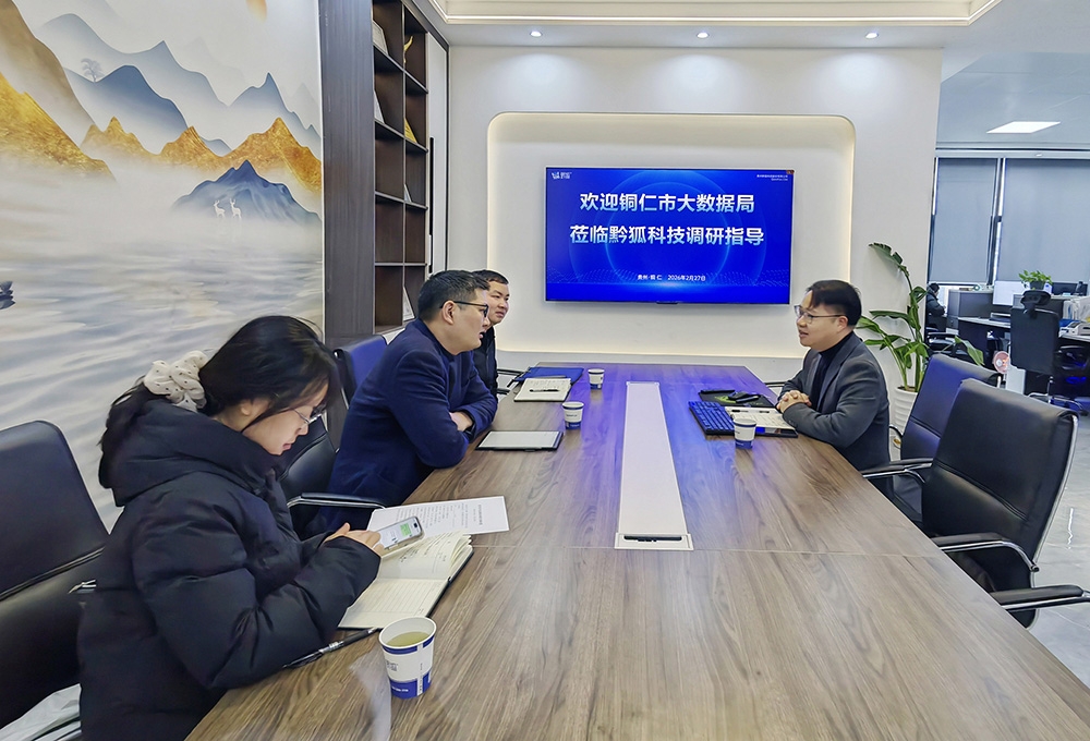 2026年2月27日,铜仁市大数据发展管理局党组成员、副局长王贵一行莅临黔狐科技调研指导,碧江区大数据局副局长胡银辉陪同调研。
